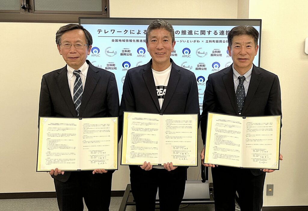 一般社団法人立科町振興公社と一般社団法人キャリアステージいといがわ、及び一般財団法人全国地域情報化推進協会(APPLIC)は、テレワークによる地域就労の推進に関する連携協定を締結しました。